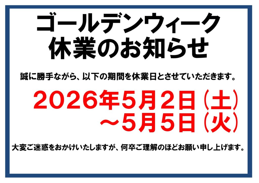 ゴールデンウィーク休業のお知らせ